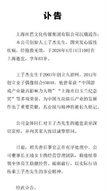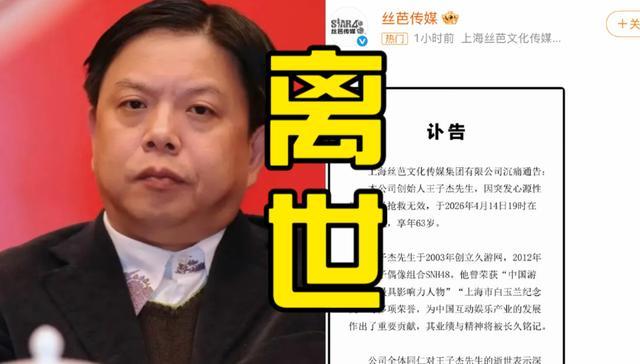 还没等这件事有结论,丝芭传媒却传出了创始人王子杰去世的消息。